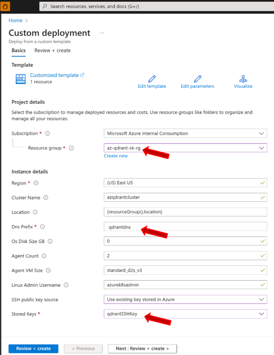 选择"Review + Create"按钮,以验证您的部署,接下来只需选择"Create"按钮来部署用于 Qdrant 的 AKS 集群。
