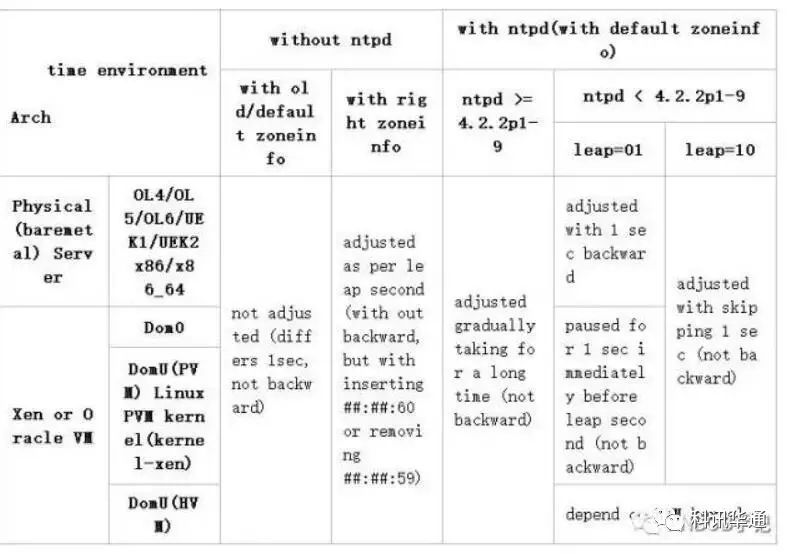 1, 单实例数据库 2, 使用了第三方 cluster 软件,如 Sun Cluster or Veritas SFRAC 配置。 3, 使用 Oracle Clusterware 10.2.0.4(Server Patch Set),11.1.0.7, 11.2.0.3, 12.1.0.1及更高的GI版本 4, 没有配置NTP, 系统使用本地时间,不会关心闰秒,因为没有做时间调整,而是会与实际相差1秒