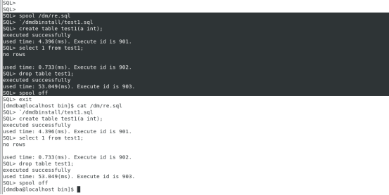 ./disql SYSDBA/SYSDBA \`/dmdbinstall/test1.sql