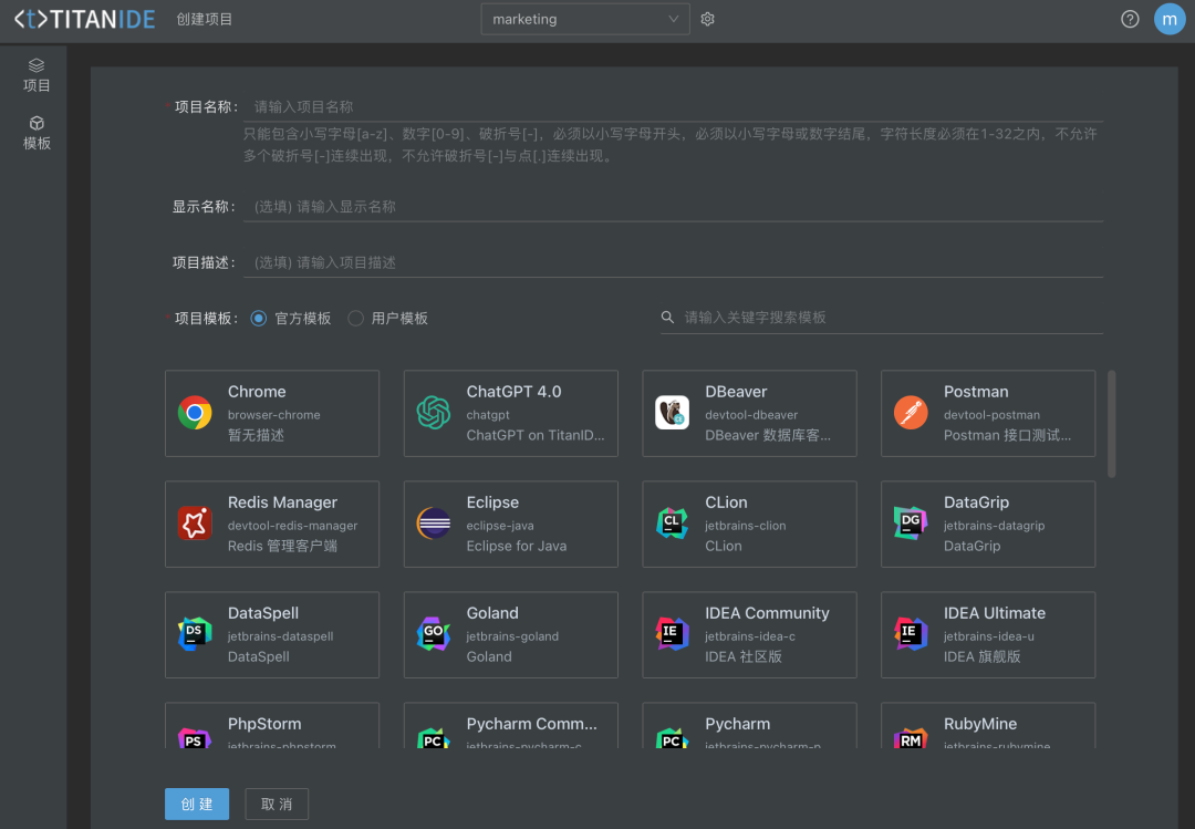 另一方面,TitanIDE还内置了拥有海量应用开发场景的模板市场。通过TitanIDE整体部署使用,能够帮助企业开发人员无需重复配置开发环境,实现一键启动Java业务开发、Python人工智能、Golang物联网的开发、C++等主流开发语言以及业务场景所需要的中间件、数据库、API接口等配套开发环境,有效将原来一两周的环境准备时间缩短至不到一分钟,帮助每一位开发者快速创建一套完整的、专属的开发调试环境。通过TitanIDE的整体应用,帮助企业用户有效避免了传统模式下因联调环境单一而出现的效率低下和相互干扰,并且满足团队复杂开发场景下的个性化的应用开发需求。