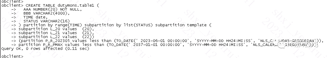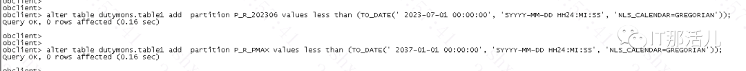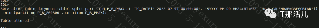 通过查询ocenbase相关资料,发现oceanbase虽然是oracle模式的,兼容大部分oracle的语句,但是不支持通过split新增分区,只能通过先drop max分区,再新增下月分区和max分区的方式。