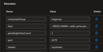 consumerGroup 和 stream 字段如其名称所示,是消费者组和初始创建的Redis Stream 名称。pendingEntriesCount 是消费者组的Pending Entries List (PEL) 中存在的尚未确认的消息数量。在本示例中,PEL 中每有两条新消息,一个实例/复制就会添加到 Container App 修订中。