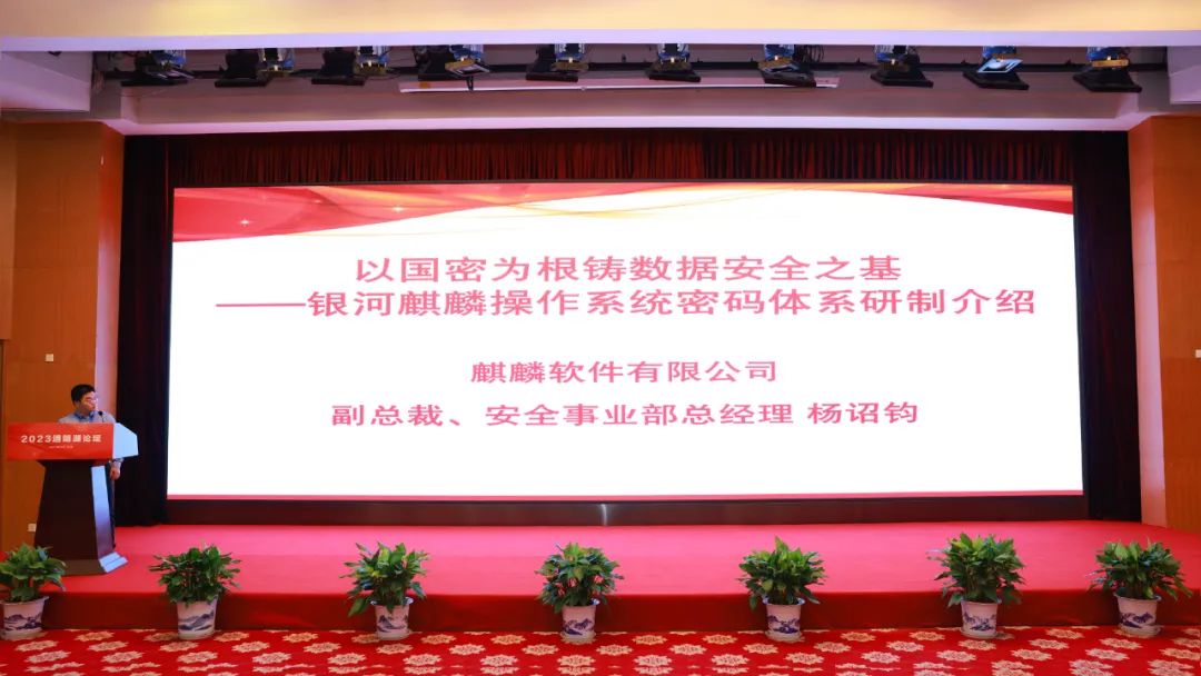 杨诏钧以《国密为根铸数据安全之基》为题详细介绍了麒麟操作系统密码体系研制工作。他表示,麒麟软件自研满足《GM/T 0028-2014 密码模块安全技术要求》的商用密码模块,从内核层和应用层在密码算法和加密协议进行国密支持,持续推进麒麟操作系统安全启动、身份认证、远程登录、磁盘加密、软件来源安装检查等密码应用进行国密改造工作,并在密码生态领域与近50家企业进行合作适配,兼容超360款主流密码软硬件,种类覆盖密码机、硬件加密卡、软件密码模块、Ukey密码钥匙、密码键盘等,类型超40款。麒麟操作系统满足了用户国密算法合规性需求,为行业数字化建设提供了安全、稳定的操作系统底座。