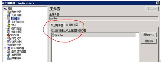 Ø 在控制台中找到客户端一项,配置恢复验证机hxdbrestore客户端属性,将介质服务器添加szsnbu主机,如下图所示: