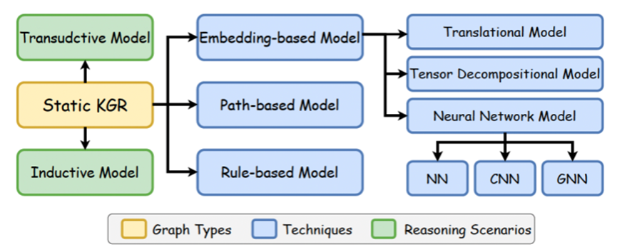 文章总结的静态、时间、多模态知识图谱推理方法的主要技术路线和代表性工作如上图所示。作者还开源了一个论文库方便读者快速获取相关文献: