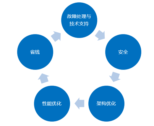 企业上云后,需要哪些方面的云运维服务?云运维服务的核心价值主要体现在下图中的5个方面: