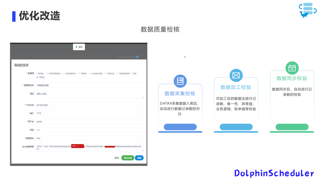 数据加工校验和数据同步校验也是使用Trino进行自定义编写的。我们编写了跨库自动同步的逻辑,并通过单独编写的Shell脚本封装了这一部分。