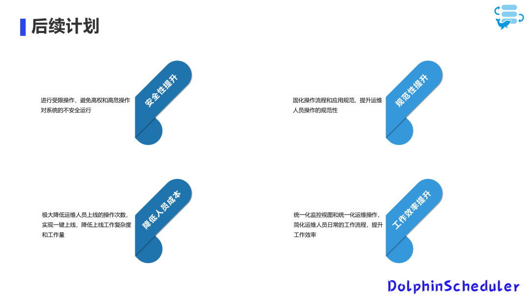未来,我们将实现这些流程的自动化。例如,根据特定模板自动生成相应脚本,直接导入到生产库中,并自动生成调度流程。