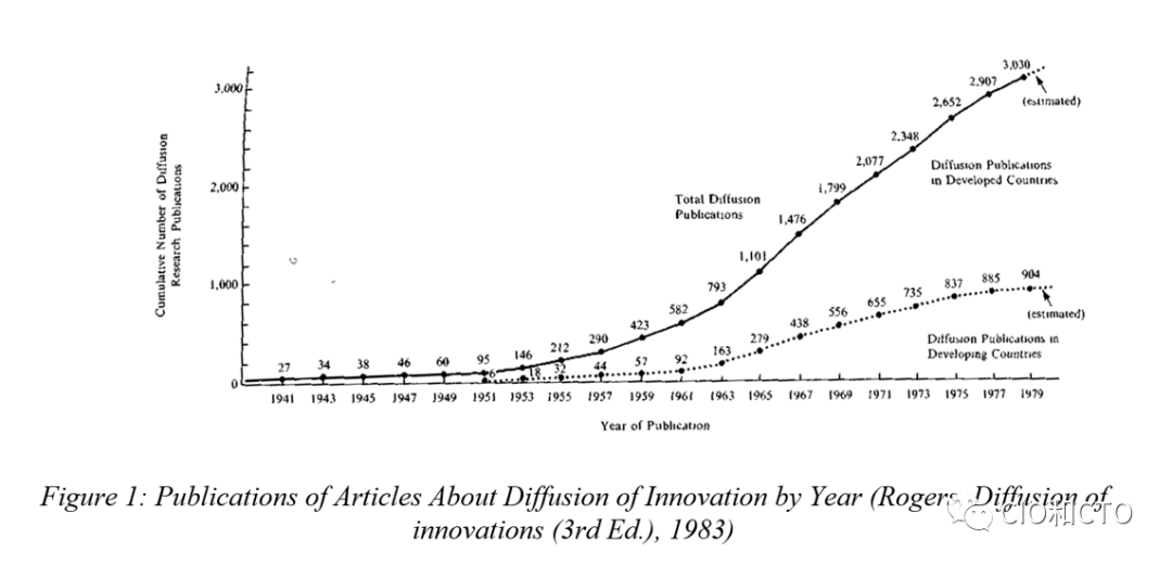 现代创新扩散理论最初是建立在20世纪50年代采用农业和家政学的新方法的基础上的,罗杰斯将该理论推广到20世纪60年代开始的涉及硬件和软件的技术(BEAL,1957)。正是通过这个过程,在采用者的头脑中感知到的这些不确定性被放大或缩小,因为方法、文化、采用者的性质及其关注的领域决定了创新扩散或技术采用的速度。这些因素体现在管理组织的政策中,决定了组织存在的理由——从军队到制造商到医疗保健——何时提供新的能力,何时提供新的能力。