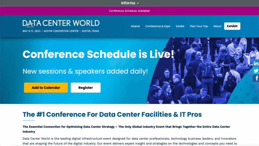 摘要:Data Center World 通过 100 多名演讲者、70 场会议和 150 家解决方案提供商提供有关行业教育和网络的专家见解。将涵盖的一些热门行业主题包括边缘计算、人工智能、托管、超大规模、预测分析、5G、云等。