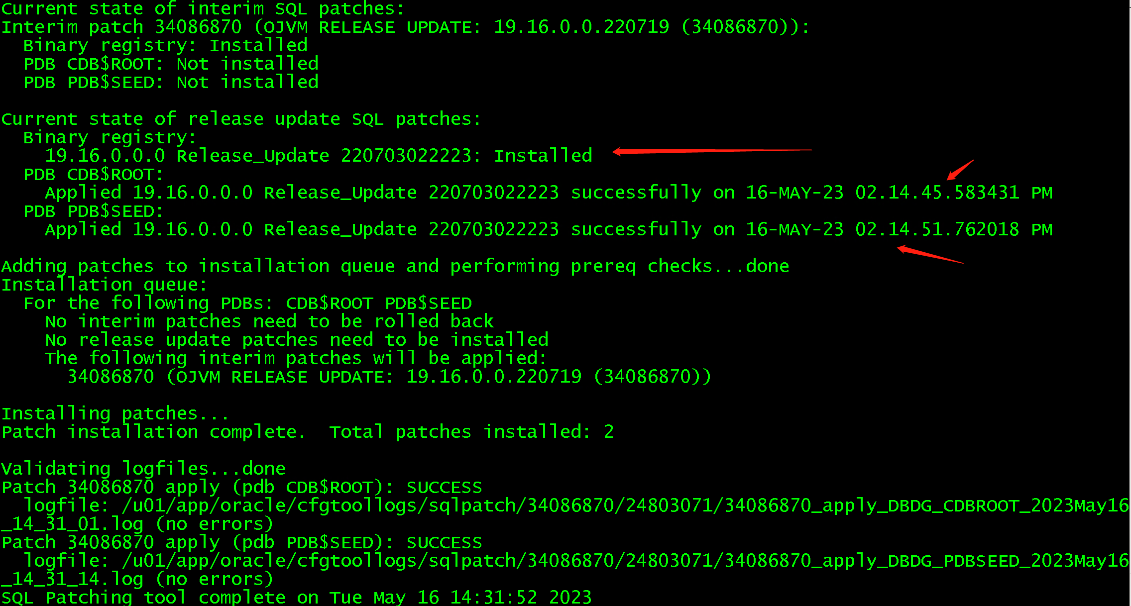 由于本次还要升级OJVM,该操作放到OJVM补丁升级完成后执行。