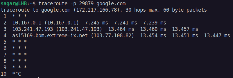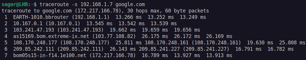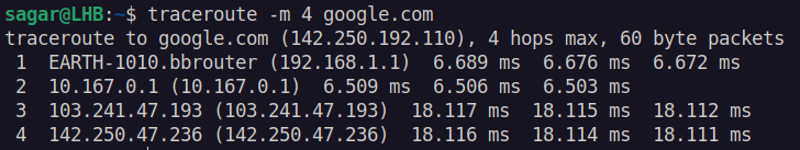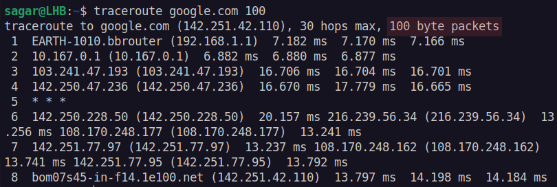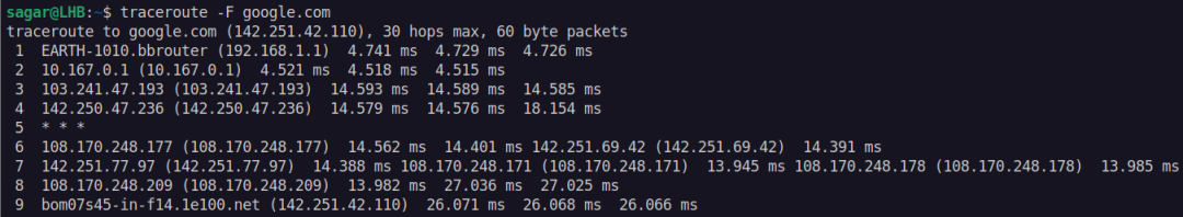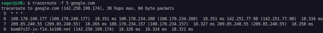 默认情况下,traceroute 将以第一个 TTL 开始,但您可以使用 -f 选项更改此行为。