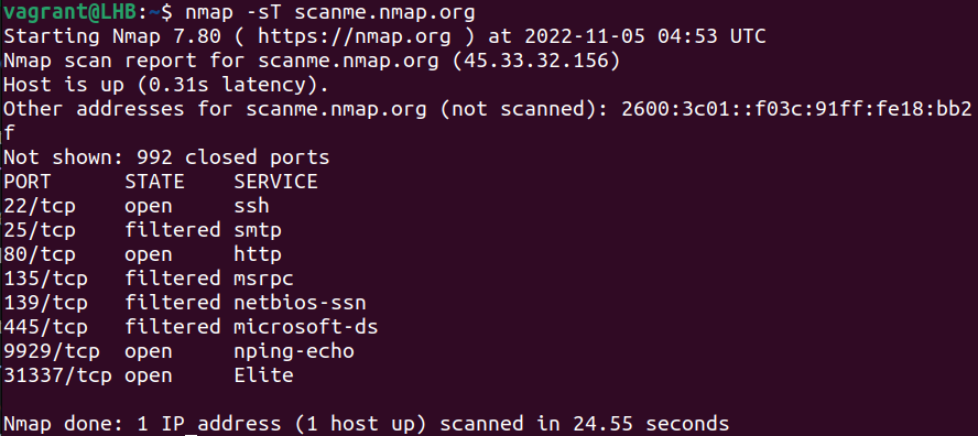 nmap -sT scanme.nmap.org