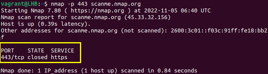 nmap -p 443 scanme.nmap.org