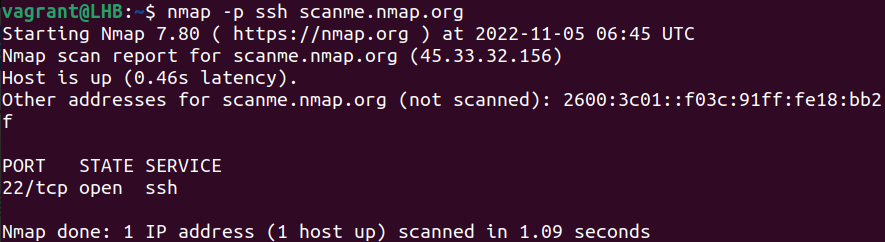 nmap -p ssh scanme.nmap.org