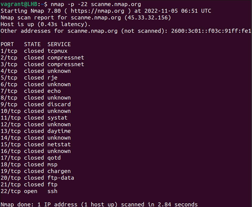 nmap -p 22 scanme.nmap.org