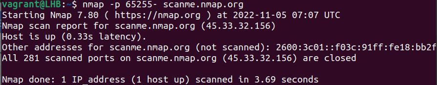 nmap -p 65255- scanme.nmap.org