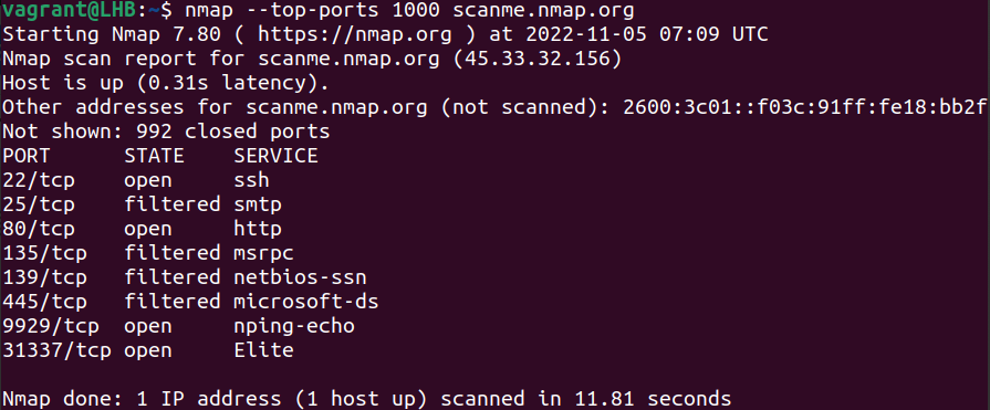 nmap --top-ports 1000 scanme.nmap.org
