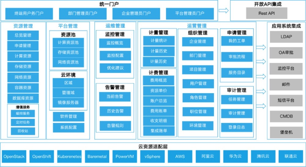 它提供了自动化的资源配置功能,为云平台各种资源提供全生命周期的管理,为企业提供快捷的 IT 服务,从而满足企业今天所面临的动态业务需求。