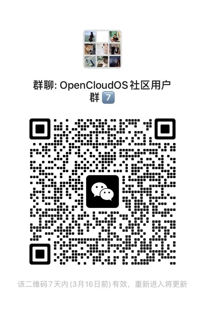 欢迎扫描下方二维码,加入社区用户群,了解 OpenCloudOS 最新动态,获取技术相关的支持,分享交流使用体验。