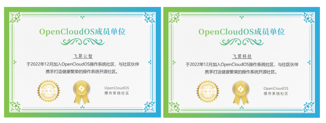 2022 年 12 月,飞算两家公司(飞算云智和飞算科技)签署 CLA(Contributor License Agreement,贡献者许可协议),正式加入 OpenCloudOS 操作系统开源社区。