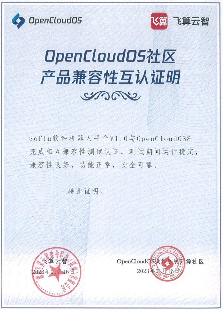为了帮助 OpenCloudOS 用户应对数字化转型中面临的软件开发和治理挑战,飞算云智将其自主研发的新一代 Java 开发工具——SoFlu 软件机器人对 OpenCloudOS 操作系统进行了全面的适配,并与 OpenCloudOS 社区完成兼容性互认: