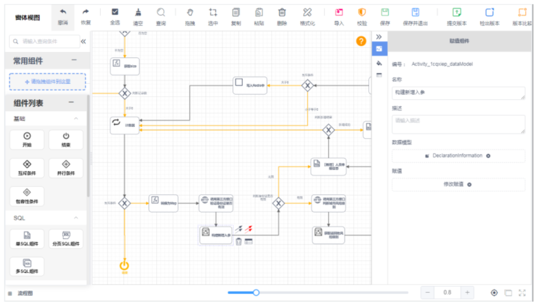 以后端 Java 可视化开发为例,开发者只需要通过可视化拖拽以及参数配置,就可以实现等同于编写复杂代码的业务逻辑,在设计业务逻辑时就形成微服务应用,达到「业务即图、图即代码」。