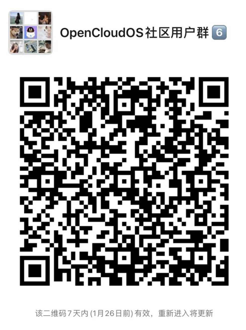 扫描下方二维码,加入社区用户群,了解 OpenCloudOS 最新动态,获取技术相关的支持,分享交流使用体验。