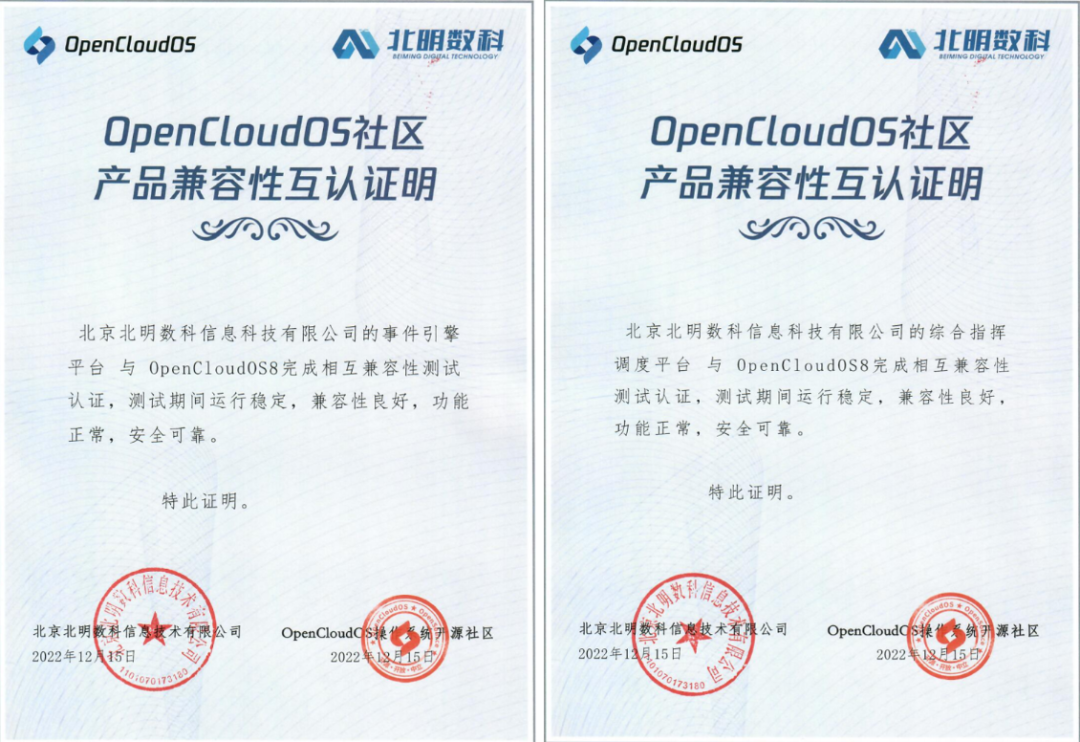 近日,北京北明数科信息技术有限公司的事件引擎平台及综合指挥调度,与 OpenCloudOS 完成相互兼容认证,测试期间,整体运行稳定,在功能、性能及兼容性方面表现良好。