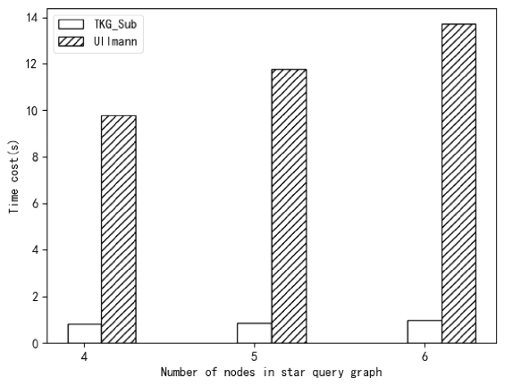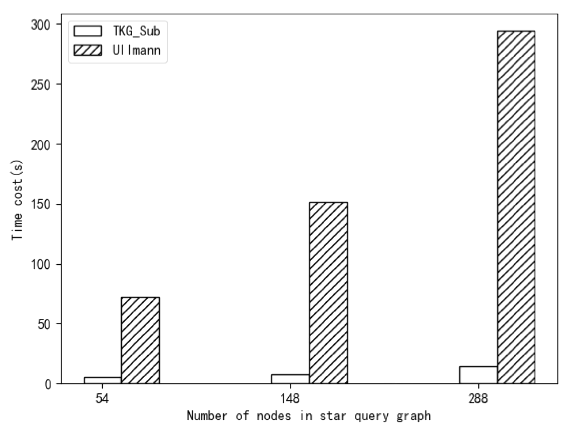 图4.TKG_Sub和Ullmann在有一个中心节点的星形查询模式下的实验结果
