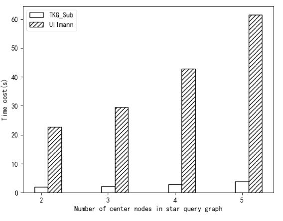 图6.TKG_Sub和Ullmann在有多个中心节点的星形查询模式下的实验结果