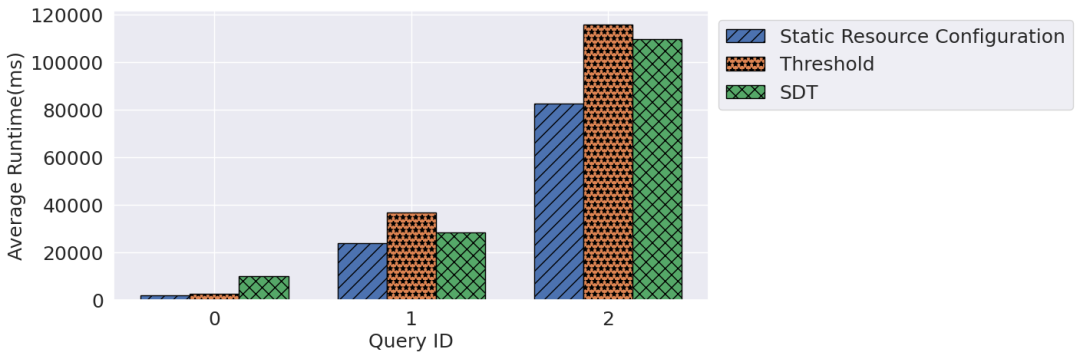 图6展示了无弹性伸缩,文中方法和基线方法的查询性能变化。在大部分情况下,该方法较基线方法花费更少的查询时间。