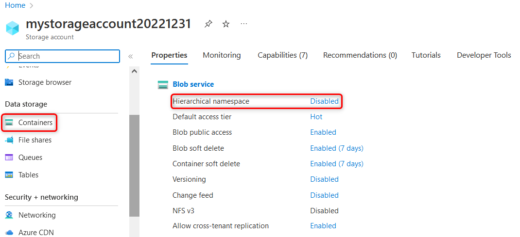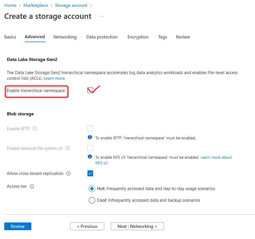 Azure还有一个Azure Data Lake服务,其实就是Azure Storage Account,只不过在你创建Azure Storage Account时,你必须开启Enable hierarchical namespace,开启之后,你创建的Azure Storage Account才是Azure Data Lake Gen2服务,否则你创建的只是普通的Azure Storage Account服务。