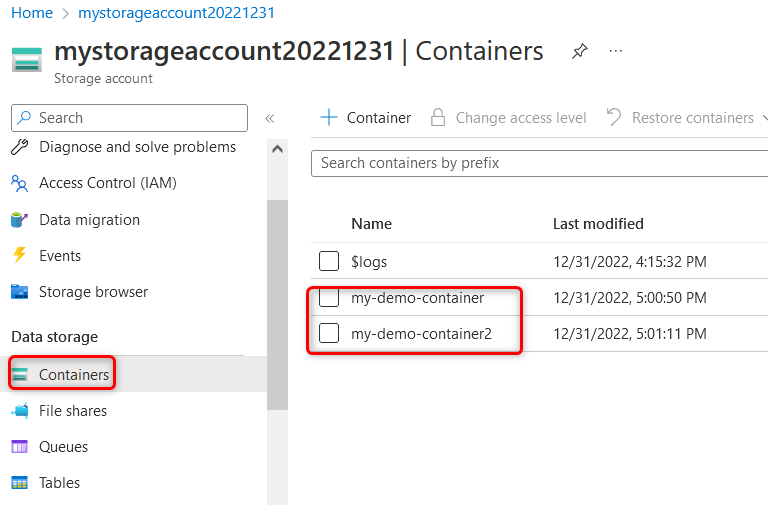 点击Data storage下面的Containers,可以看到我这里有两个containers