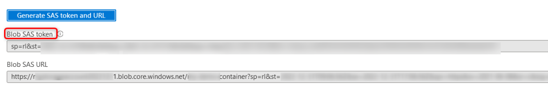 OK,所有选项都配置完成之后,只需要点击Generate SAS token and URL即可。创建出来的token就会立即显示在下面了。