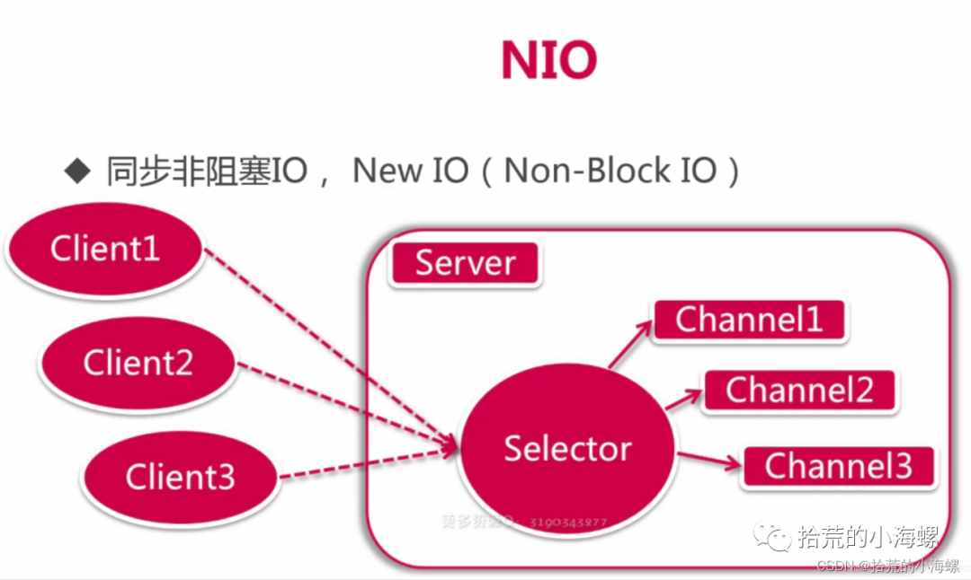 - BIO:一个连接一个线程,客户端有连接请求时服务器端就需要启动一个线程进行处理。线程开销大。