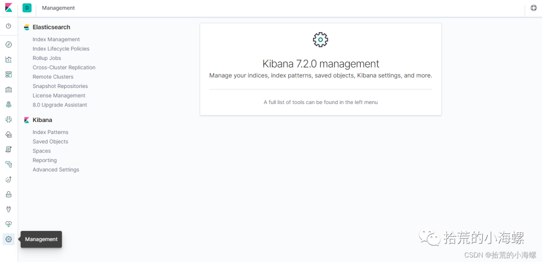 点击Management,再点击Kibana下面的Index Patterns,然后Create index pattern