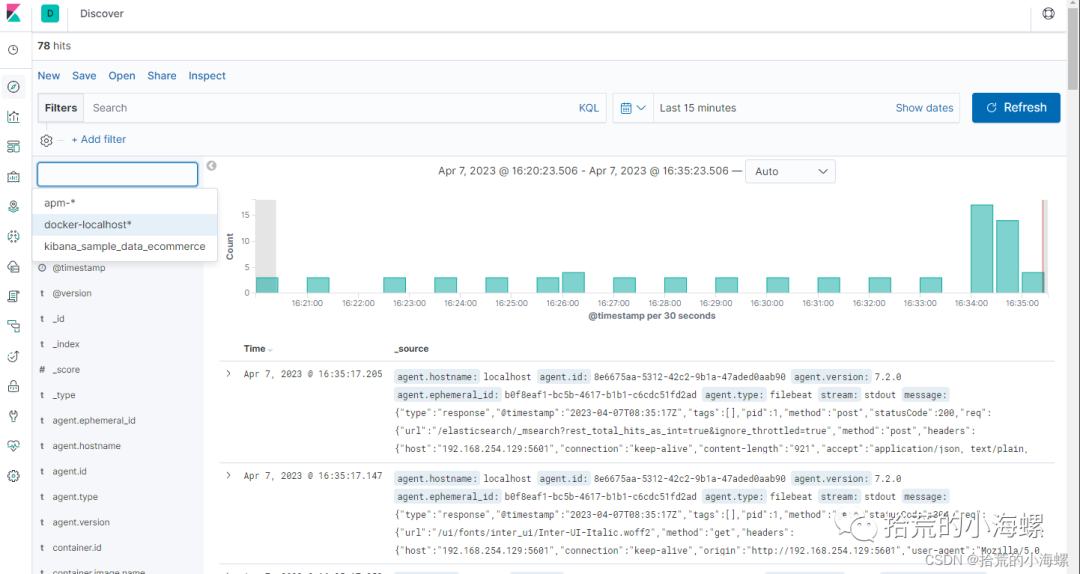 创建完成后在Discover面板通过filter过滤当前的索引值。