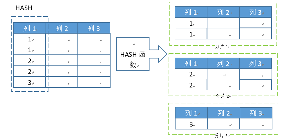 - 数据重分布:当分片规则发生变化时,就需要对数据进行重新分片,也是对数据进行重分布的过程。例如,当分片数量增加或者减少,则每个分片拥有的HASH值需要重新分配,此时就需要将不属于该分片的数据迁移到其它分片,在迁移动作完成之前,有些依赖于分片规则的计算暂时不能进行。而为了尽量少迁移数据,在HASH值重新分配的时候,应该尽量减少从一个分片迁移到其它分片的HASH值。