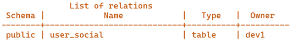 \d中的元命令是在幕后psql 执行以下查询,向我们展示关系列表(包括我们创建的表)以及谁拥有每个关系。