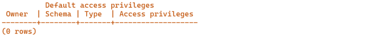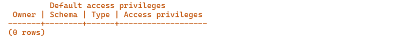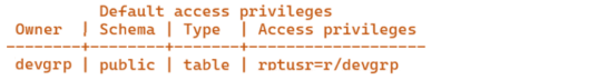 为了说明这一点,让我们先创建新的默认访问权限,然后再创建rptuser应该能够查询的另一个新表。