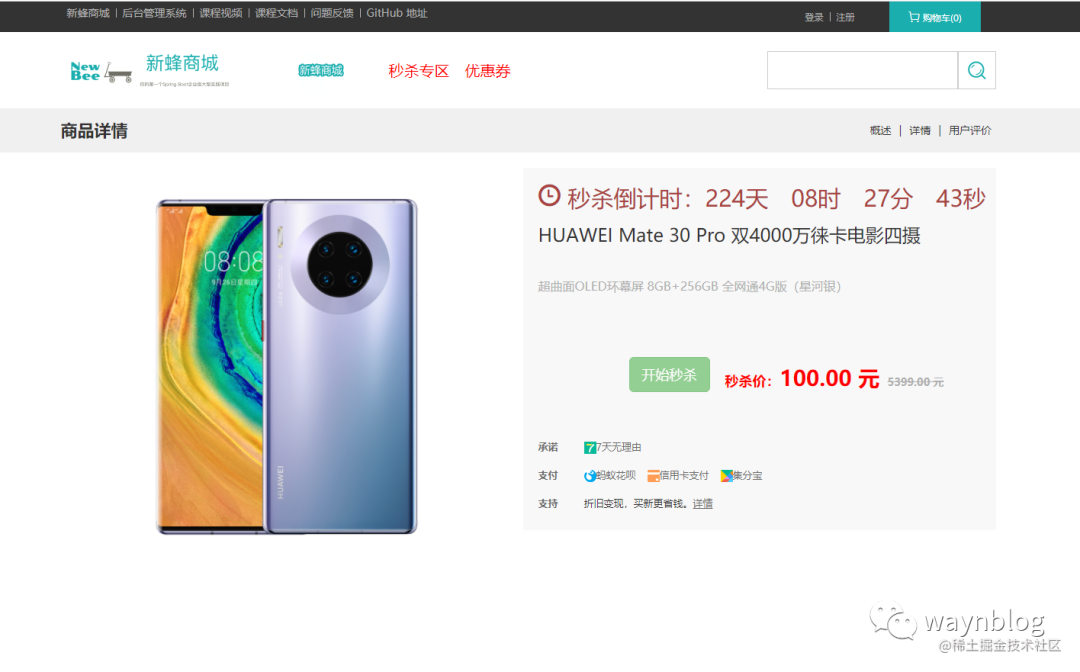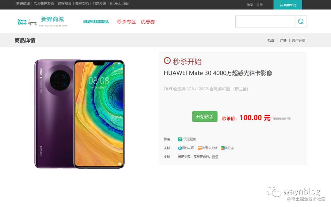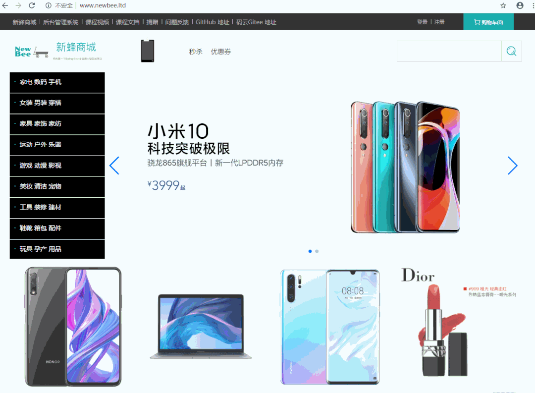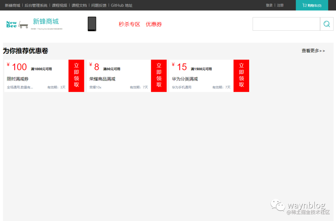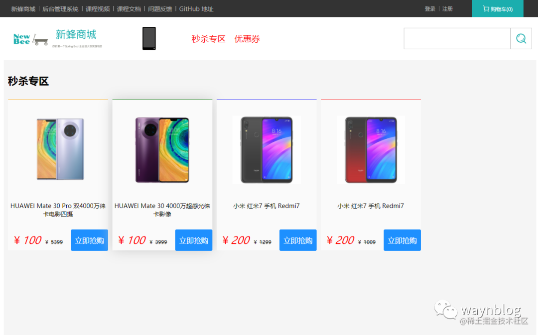源码地址:https://github.com/wayn111/newbee-mall-pro。 在线地址:http://121.4.124.33/newbeemall。