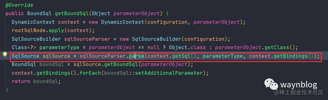 BoundSql boundSql = sqlSource.getBoundSql(parameterObject);