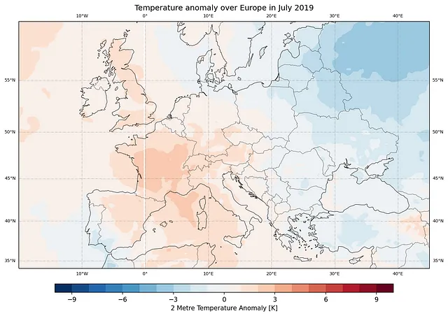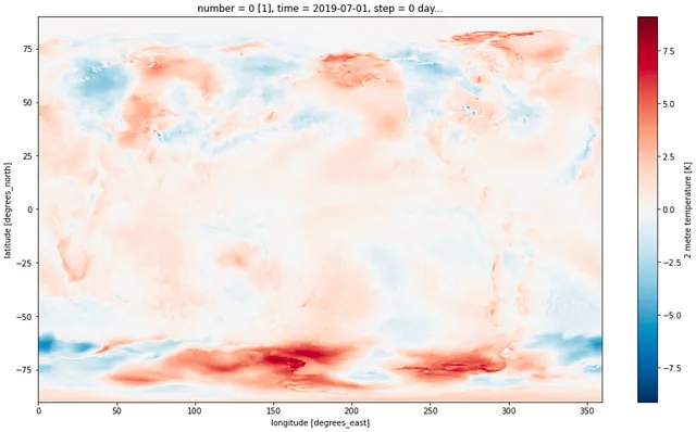 对于此分析,我们将使用我们在第一篇文章中探讨过的grib文件。它将存储在data/1month_anomaly_Global_ea_2t_201907_1991–2020_v02.grib