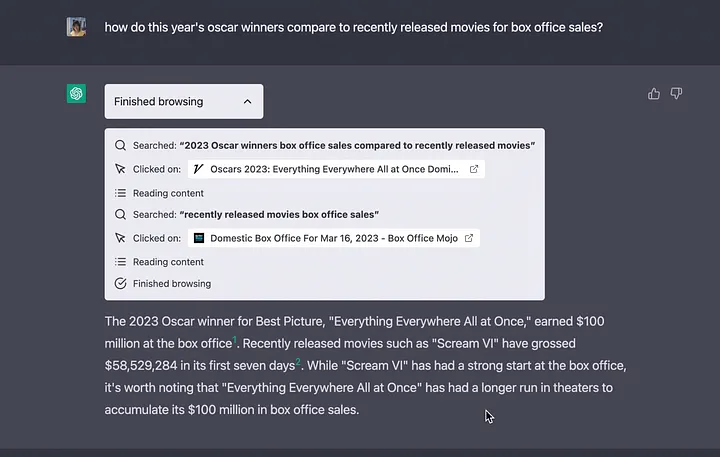 ChatGPT的知识库是用截至2021年9月的数据训练的,但通过使用这些插件,ChatGPT现在能够在网络上搜索最新的答案,这样就消除了仅依赖其知识库的限制。
