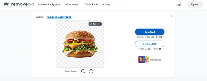现在需要做的是去除该图像的背景。为此可以使用像Remove.bg这样的在线服务。将图像上传到 removeb.bg并下载即用型视觉物料。