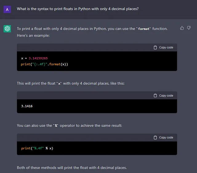 如果你正在做一个 Python 项目,想得到一些反馈或指导,你可以使用聊天工具向 ChatGPT 征求意见。只需提供代码片段并寻求反馈,ChatGPT 就会提供意见和建议。