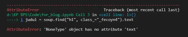 这意味着我们尝试检索的对象没有成功检索任何内容,因为据说我们正在尝试访问“ NoneType ”的属性。如果您尝试打印( title ),结果也将为空。
