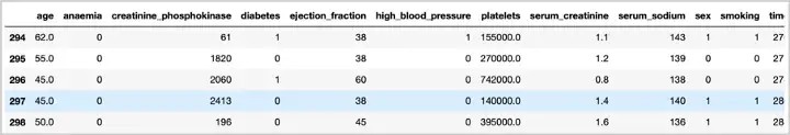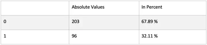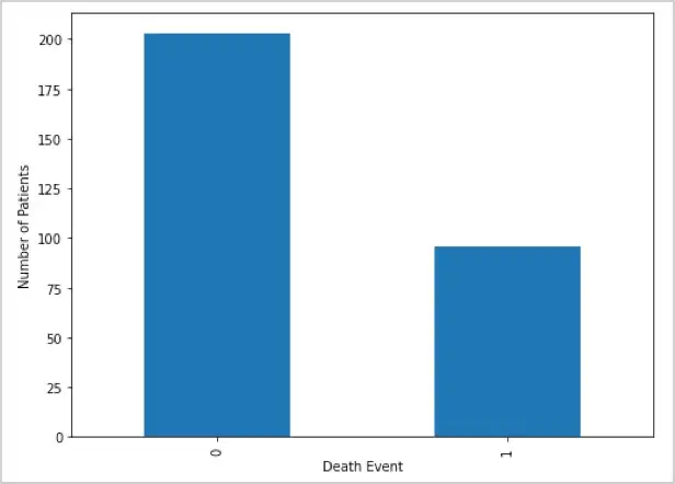 根据条形图,我们可以看到只有 1/3 的患者或 96 名患者 (32.11%) 死于心力衰竭,而 2/3 的患者或 203 名患者 (67.89%) 存活下来。它还向我们表明分布略微不平衡。在拟合模型时,这可能会导致类不平衡问题。