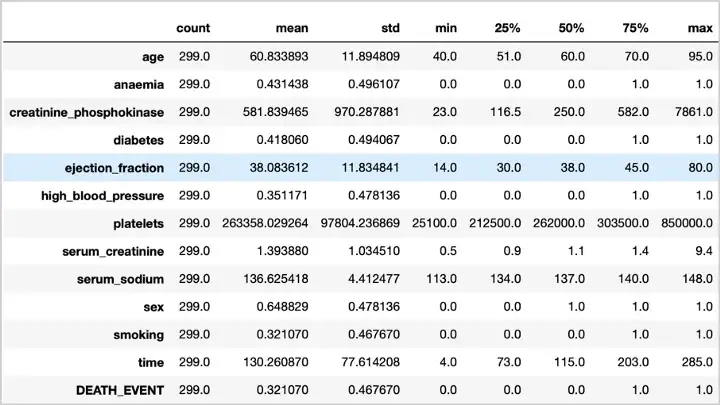 在我们构建和训练模型之前,了解我们的数据非常重要,这样我们才能决定使用哪个模型。因此,我们将对预测心力衰竭数据集进行探索性数据分析。该数据集包含 12 个可用于预测心力衰竭死亡率的特征。本研究的目的是预测患者是否在随访期间死亡。
